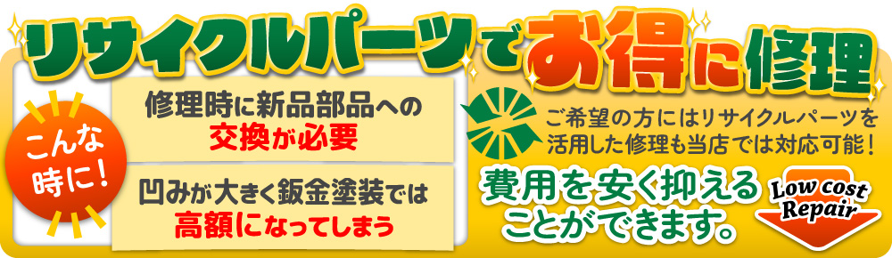 ⑤新品部品だけではなく、ご希望の方にはリサイクルパーツを活用した修理をご案内!